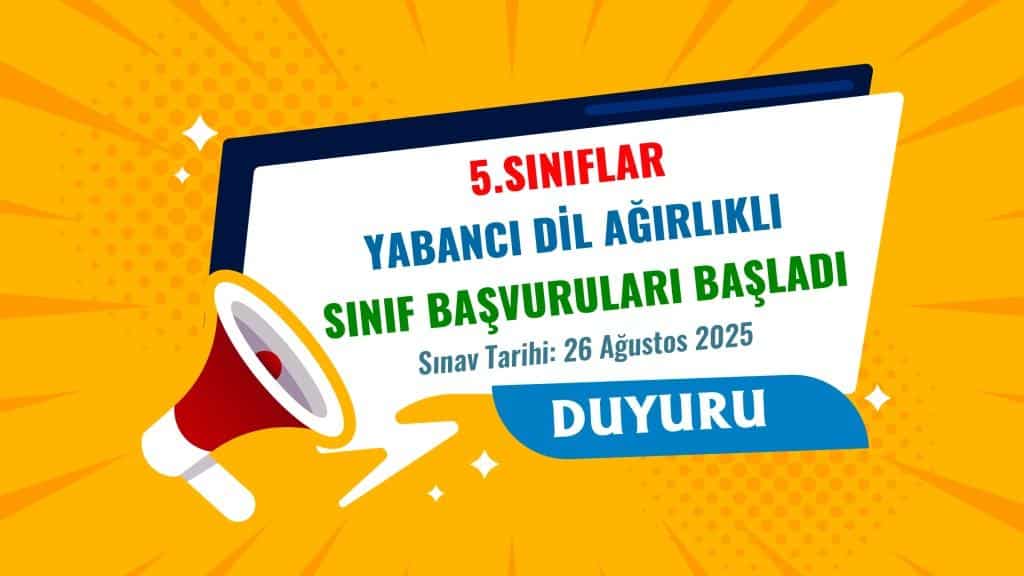 2025-2026 EĞİTİM-ÖĞRETİM YILI YABANCI DİL-İNGİLİZCE PROJE SINIFLARI SINAV ÖN KAYIT BAŞVURULARINI ON-LİNE YAPTIKTAN SONRA 23 HAZİRAN 2025 TARİHİ İTİBARİYLE OKULUMUZA BİZZAT GELMENİZİ BEKLİYORUZ.
